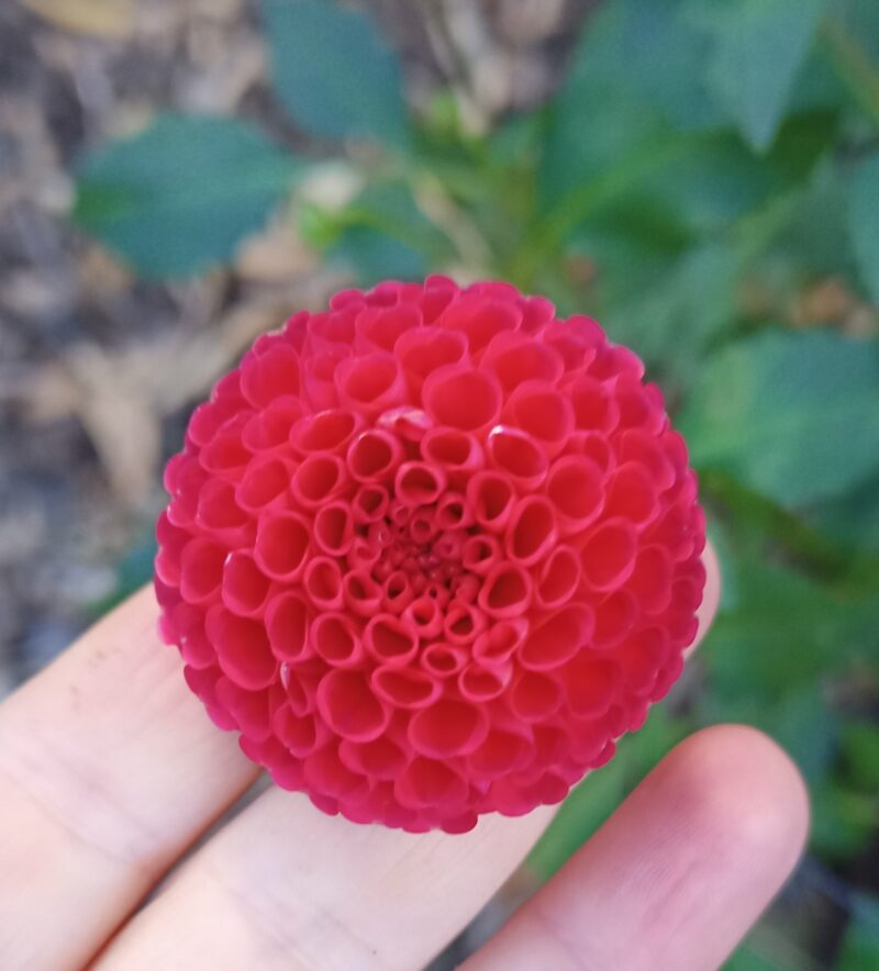 Gorgeous little burnt orange pompon flowers. Great as a cut flower and very prolific.